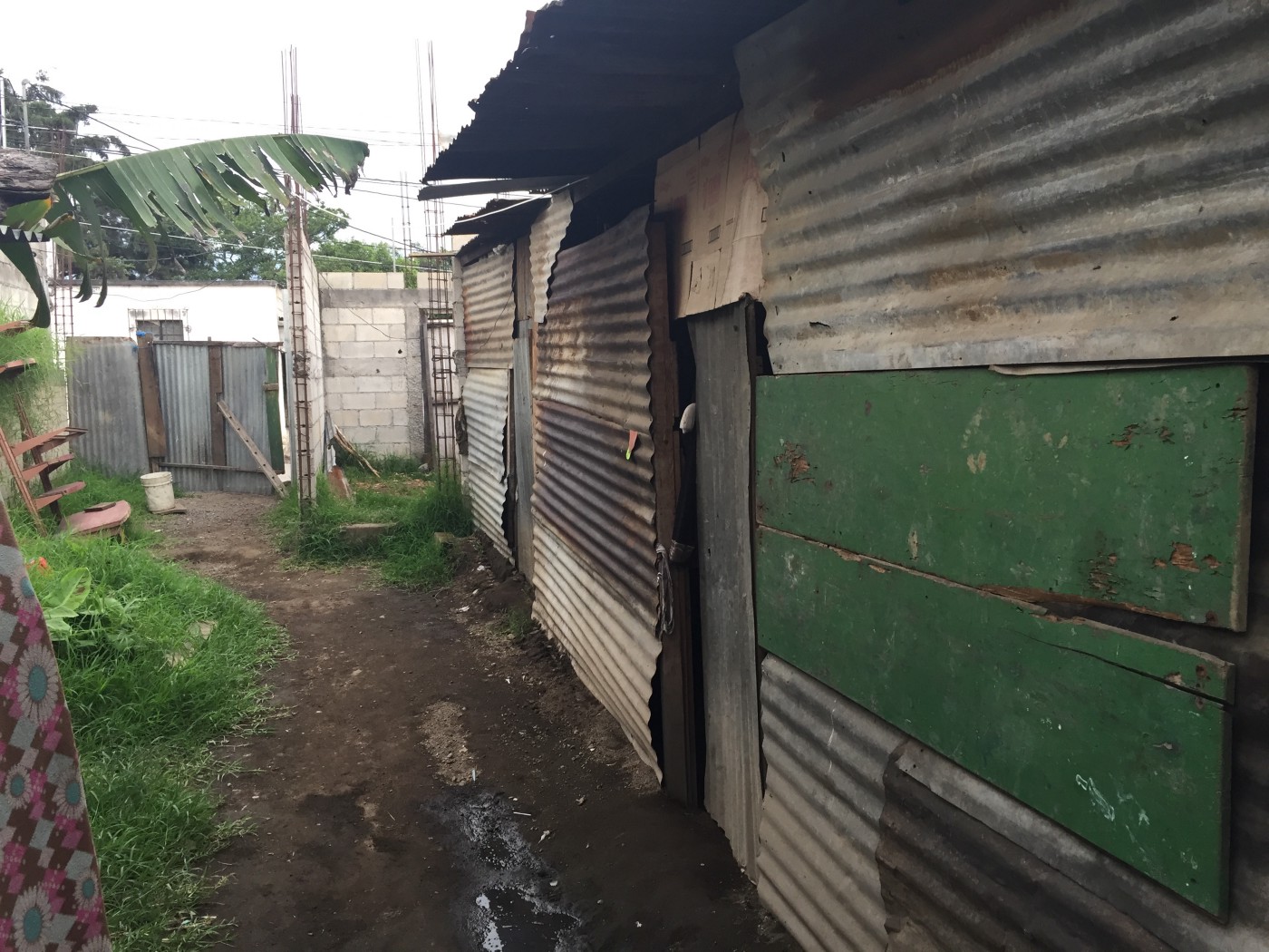 When we arrived at the home, Pamela opened the corrugated steel gate by moving the two-by-four from behind. The rusted piece of metal serves as the only door to the small piece of land they rent, their home a makeshift structure of brick, corrugated steel and fabric. They don’t have a floor and there are holes in the roof. When it rains, the dirt quickly turns to mud and many small ravines emerge. Chickens and pigeons run through the house, and the only water comes from an outdoor sink.